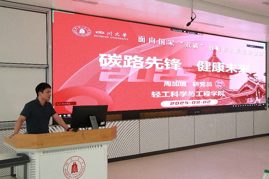 生物质与皮革工程系周加境研究员介绍了生物质技术工程专业的发展定位与培养模式。周加境研究员讲到,生物质技术与工程专业立足国家绿色低碳战略,聚焦生物质资源的创新研究与产业应用,构建了“基础培养+专业深耕+国际视野”的课程体系,助力学生成长为服务传统行业升级与新兴领域发展的专业人才。