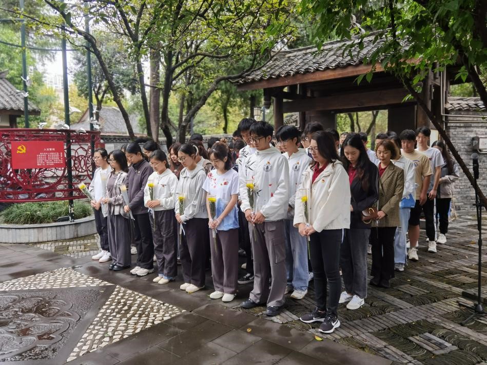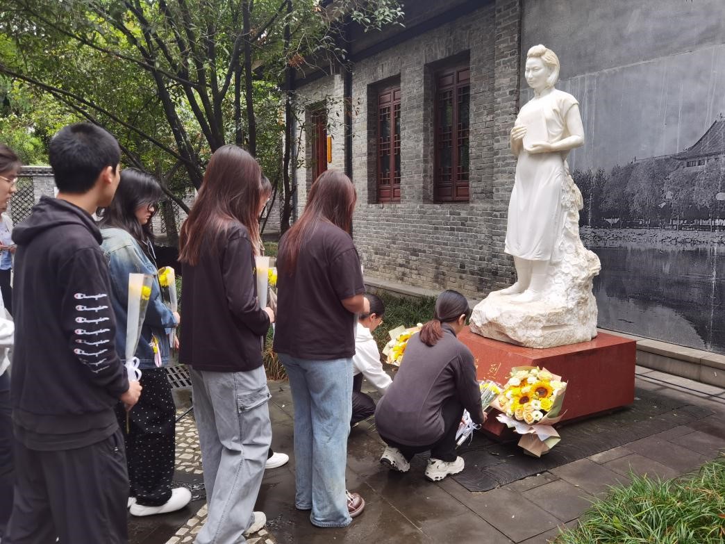 最后,师生们依次向江姐塑像敬献鲜花,鲜花寄托着无限的敬意与感激。活动在参观江姐纪念馆中圆满结束,师生们通过深入了解革命先辈的光辉事迹,进一步激发了对历史的思考与对未来的憧憬。