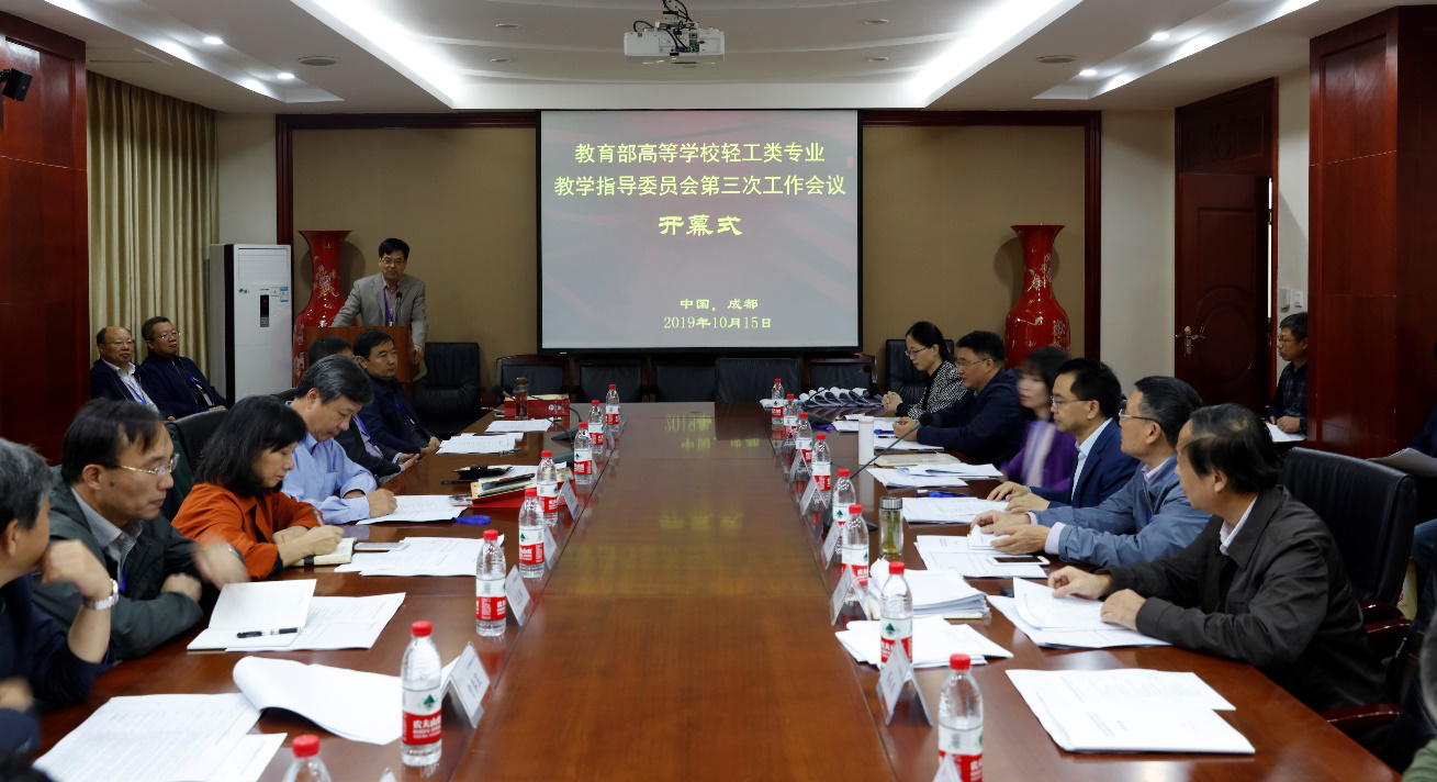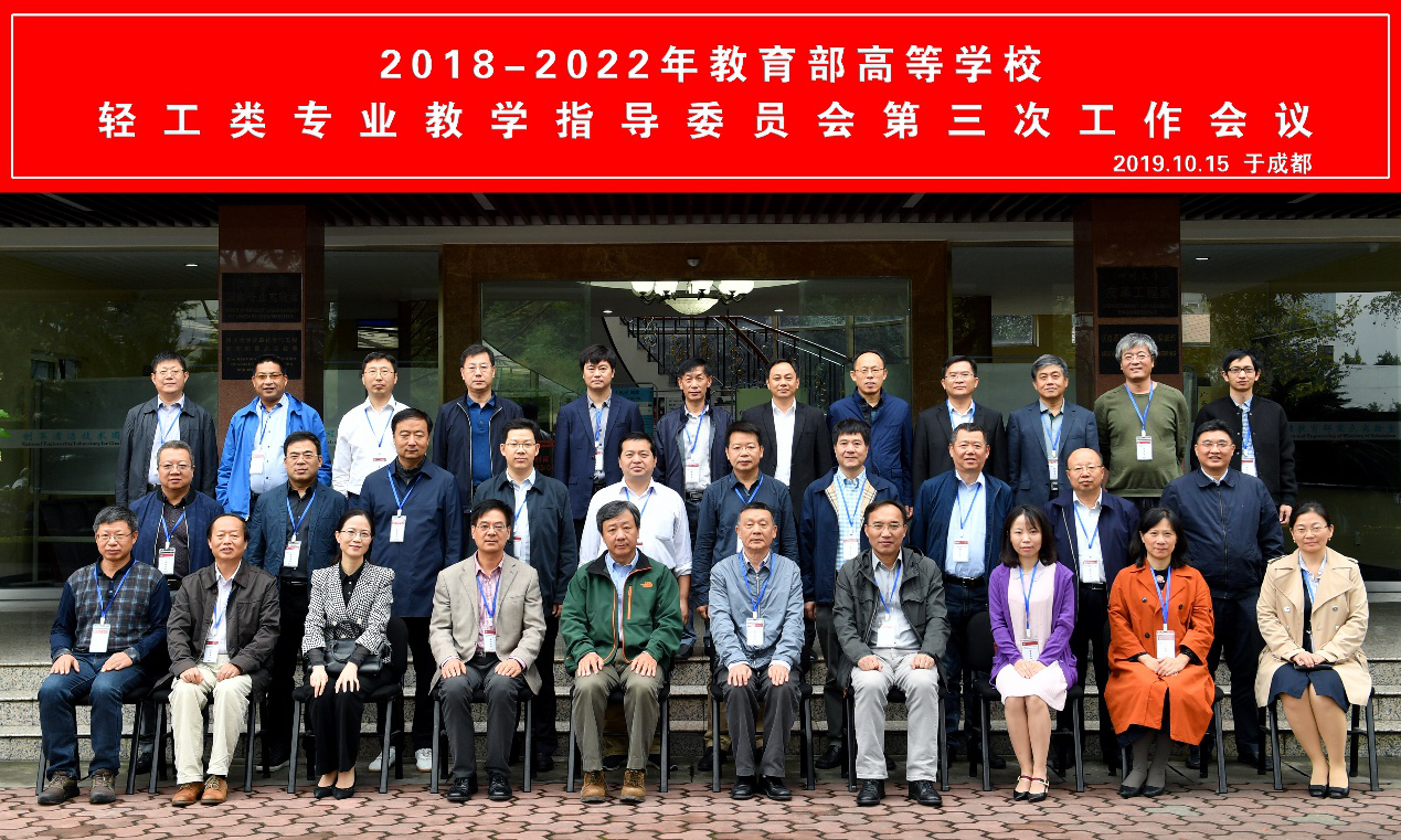 为全面贯彻落实全国教育大会精神、新时代全国高等学校本科教育工作会议要求,推进“双万计划”建设工作,2019年10月14日-16日,2018-2022年教育部高等学校轻工类专业教学指导委员会(以下简称轻工类教指委)第三次工作会议在四川大学365英国上市集团成功举办。轻工类教指委主任石碧院士、四川大学副校长褚良银教授、教育部高教司理工处叶欣同志、四川大学教务处副处长李华教授,以及轻工类专业教学指导委员会的28名委员和相关院校的代表参加了会议。