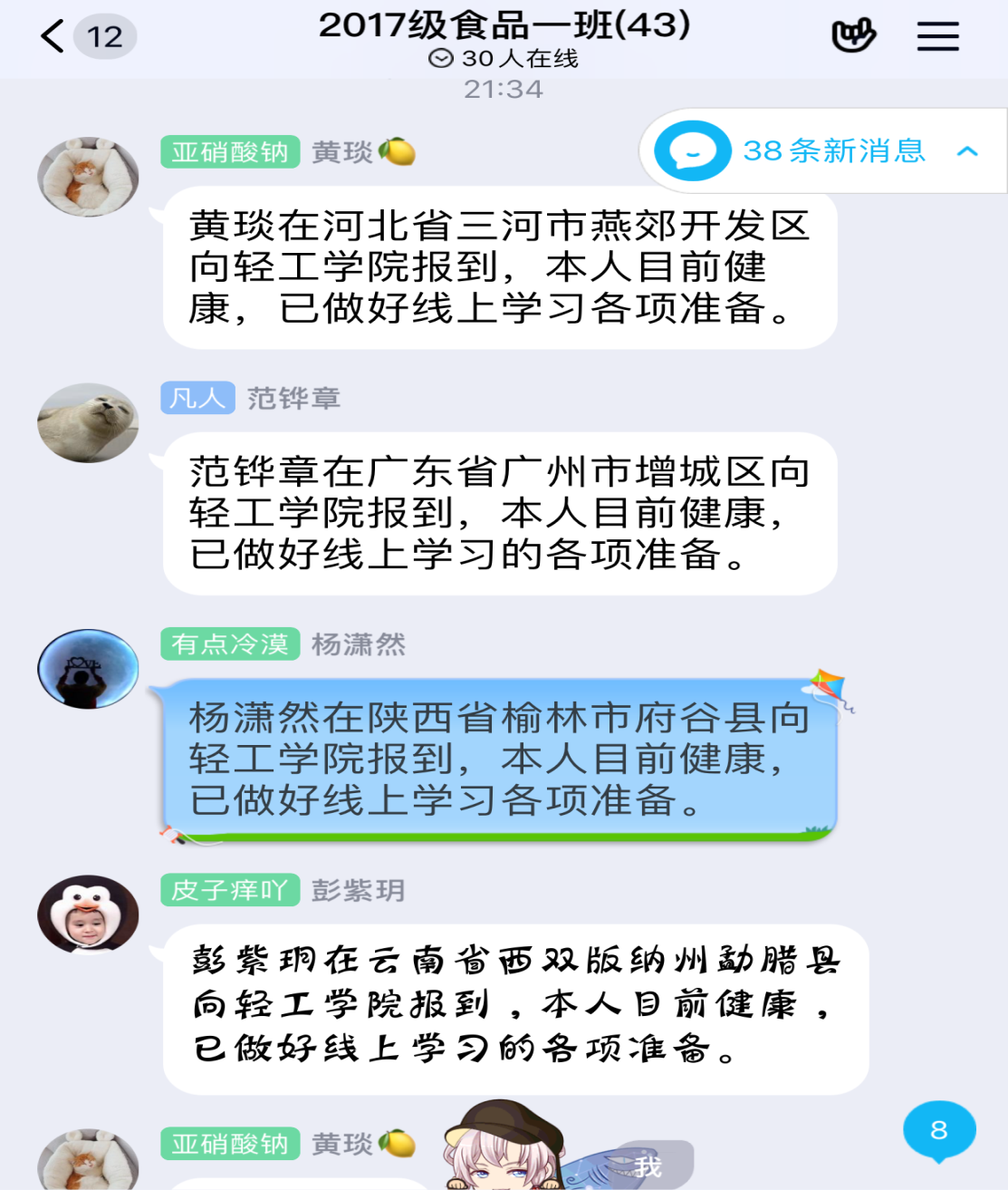 王振亚-365英国上市集团轻化工程专业2016级本科生:通过今天的在线学习,我充分感受到了任课老师的认真与负责,虽然只是线上教学,但是教学质量依然很高,老师会提前将我们要学习的内容发布到讨论组中,并提醒我们上课所需要准备的资料。我相信在我们和老师的共同努力下,能较好的完成学习内容,也相信疫情一定会很快过去,我们也能很快回到学校!