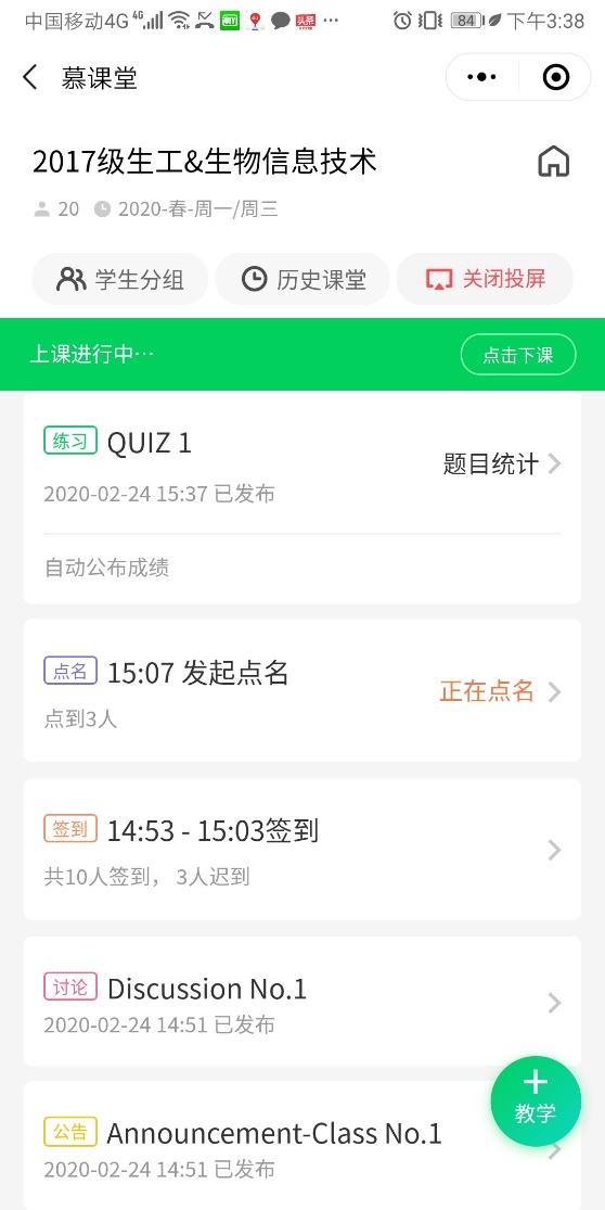 为确保线上教学有序开展,任课教师普遍提前半个月认真研究线上教学的特点并有针对性地做好授课准备,包括提前建好课程群,收集、整理、上传教学资料(教学大纲、电子版教材、课件、参考书籍等)。开课期间,严格按照教学计划开展线上教学工作,包括认真发起签到、组织讨论和布置课后作业。