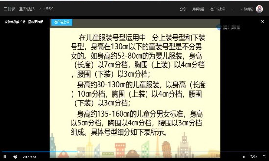 《童装结构设计与制作工艺》任课教师申鸿副教授事先尝试多种教学平台,基于服装设计类课程理论结合实践的特点,最终采用腾讯课堂视频录制协同QQ群教学研讨的授课方式,从而构建起符合课程特点的线上教学模式。在课程内容的呈现上,根据教学内容的完整性,把课程细分为不超过30分钟的小版块,每个版块包含在腾讯课堂观看时长在15分钟以内的授课视频和QQ群在线问答等两个部分,根据讨论过程掌握教学效果并实时进入另一个版块的学习。