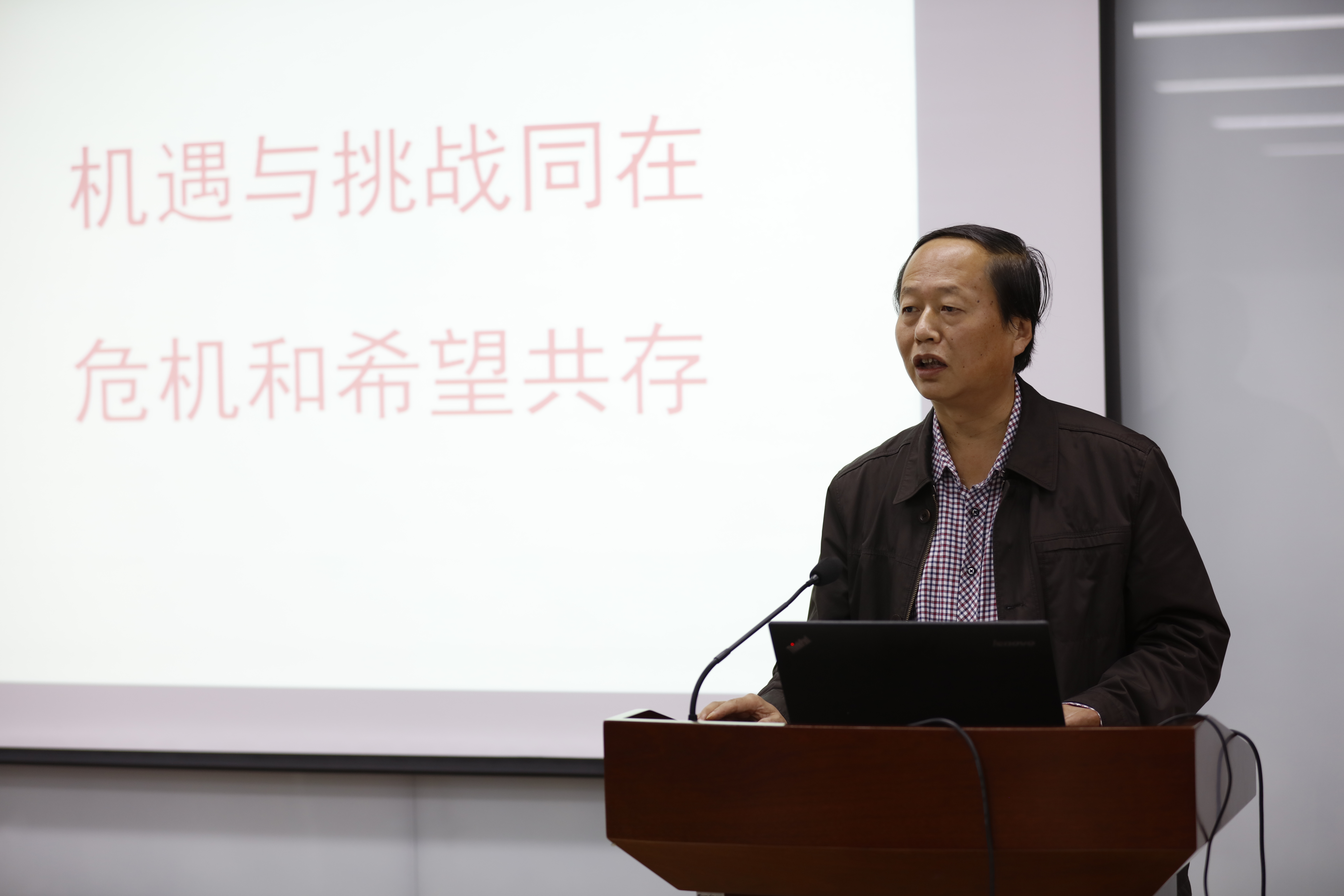 2019年1023日下午,我院组织全体教师及学生党员代表,在皮革楼报告厅召开“不忘初心、牢记使命”主题教育专题党课讲授会。本次党课由院党委书记刘晓虎同志讲授,会议由何有节院长主持。