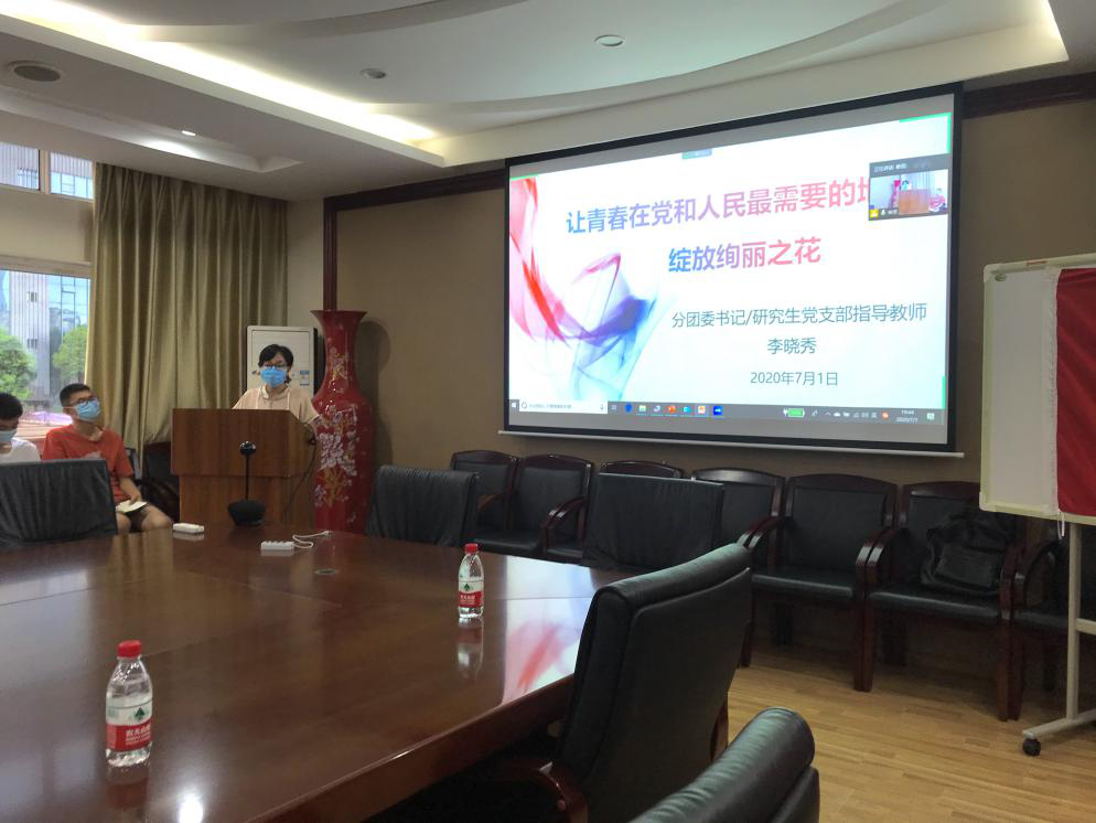 为热烈庆祝中国共产党成立99周年,认真落实“四个一”行动方案,365英国上市集团学生党支部于2020年7月1日晚在皮革楼209会议室隆重举行“铭初心、强党性、践行动”七一主题党日活动。本次主题党日活动采取线上线下相结合的方式进行,学院党委副书记冯国涛老师、学生事务办公室主任贺婷老师、2016级本科生党支部书记王舒灏老师、2017级本科生党支部书记杨维老师以及研究生党支部指导教师李晓秀老师及各支部党员代表参加了线下活动,其余学生党员均通过云端参会,主题活动由杨恒同志主持。
