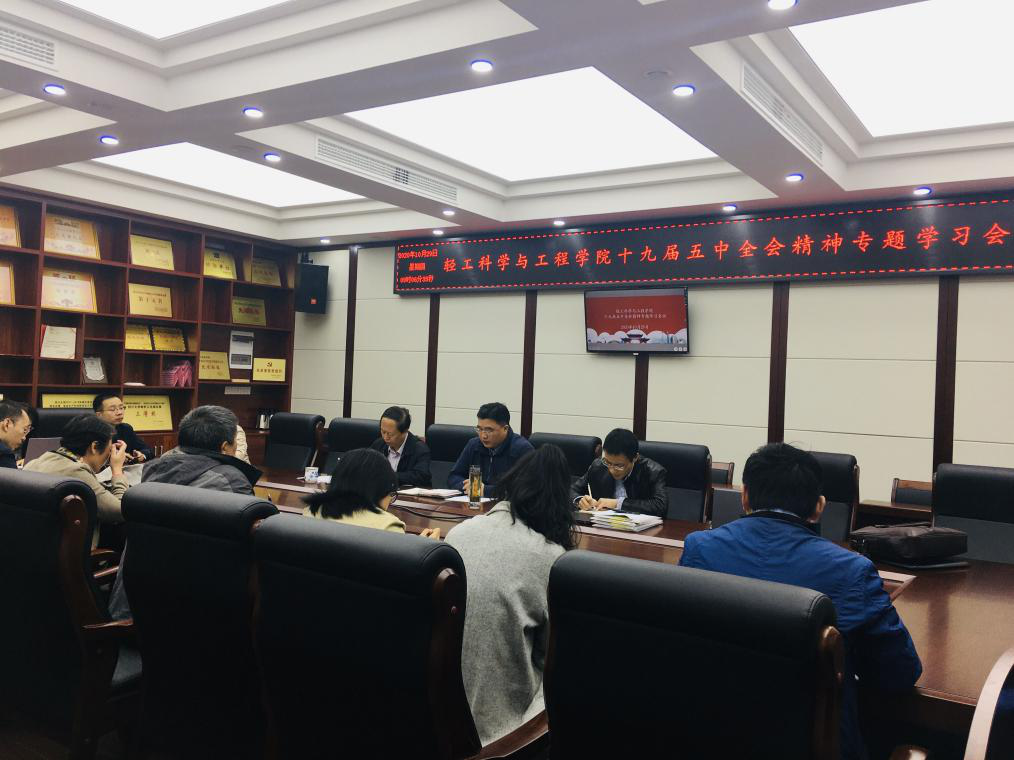 2020年10月29日上午,学院在纺工附楼205会议室召开十九届五中全会精神专题学习暨学院“十四五”发展规划编制动员及工作部署会,学院领导班子成员、两委委员、系所负责人、教职工党支部书记、科级干部参加了本次学习会,会议由刘晓虎书记主持。