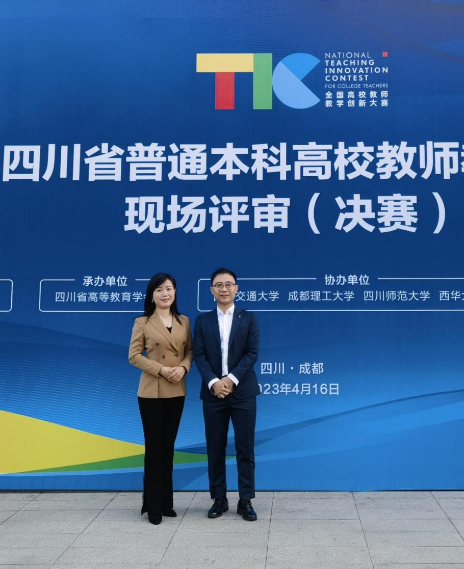 2023年4月16日,第三届四川省普通本科高校教师教学创新大赛(决赛)在西南交通大学落下帷幕。我院金垚和杨璐铭老师作为四川大学代表团成员参加了比赛,经过前期网络评审、现场汇报、专家提问等环节的激烈角逐,两位老师从全省300多位选手中脱颖而出,金垚副教授获得副高组一等奖,杨璐铭教授获正高组二等奖。