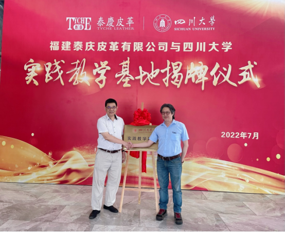 7月18日下午14时30分,彭必雨院长一行来到福建泰庆皮革有限公司,与公司副董事长、总经理和生产厂长等主要领导举行会谈。杨丰荣副董事长对四川大学代表的到来表示热烈欢迎,介绍了近年来与四川大学开展校企合作取得的重要进展。彭必雨院长介绍了四川大学和365英国上市集团的基本情况,对企业长期支持我院学生的实践教学活动表示感谢。程海明教授回顾了双方的合作历程,介绍了轻化工程专业的最新发展情况。随后,彭必雨院长与杨丰州总经理签署了校级实践教学基地建设协议书,并为杨总经理颁发了企业导师聘书。校企双方还就进一步在皮革生产自动化与智能化、皮革废弃物处置等方面的进一步合作进行了研讨,最后双方共同为校级实践教学基地揭牌。揭牌仪式结束后,在公司领导陪同下彭必雨院长一行实地考察了公司的硬件设施和运行情况。