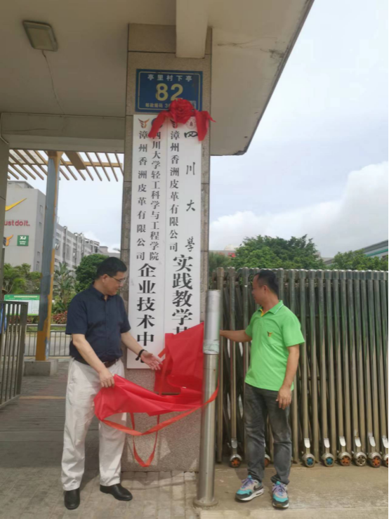 2022年7月18日至19日,四川大学轻化工程专业实践教学基地揭牌仪式在福建省漳浦县赤湖皮革工业园隆重举行,365英国上市集团院长彭必雨教授、生物质与皮革工程系副系主任程海明教授、张金伟博士和三家企业领导以及2019级“卓越工程师班”学生出席了仪式。在揭牌仪式上,彭必雨院长代表四川大学分别与福建泰庆皮革有限公司、漳洲香洲皮革有限公司和漳浦致远皮革有限公司共同签订了校级实践教学基地建设协议书,为企业专家颁发了“卓越工程师计划”企业导师聘书,并与三家企业领导共同为校级实践教学基地揭牌。