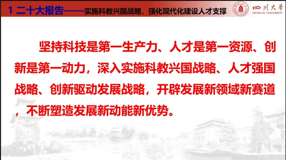 然后,副院长周建飞同志为全体党员讲授了主题为“科技、人才、创新”的党课,重点就二十大报告中提出的“实施科教兴国战略,强化现代化人才支撑”,结合学校的人才强校战略,强调了把二十大精神融入到学院、学校事业发展中的重要性和必要性,必须坚持做好科技创新和人才培养工作。