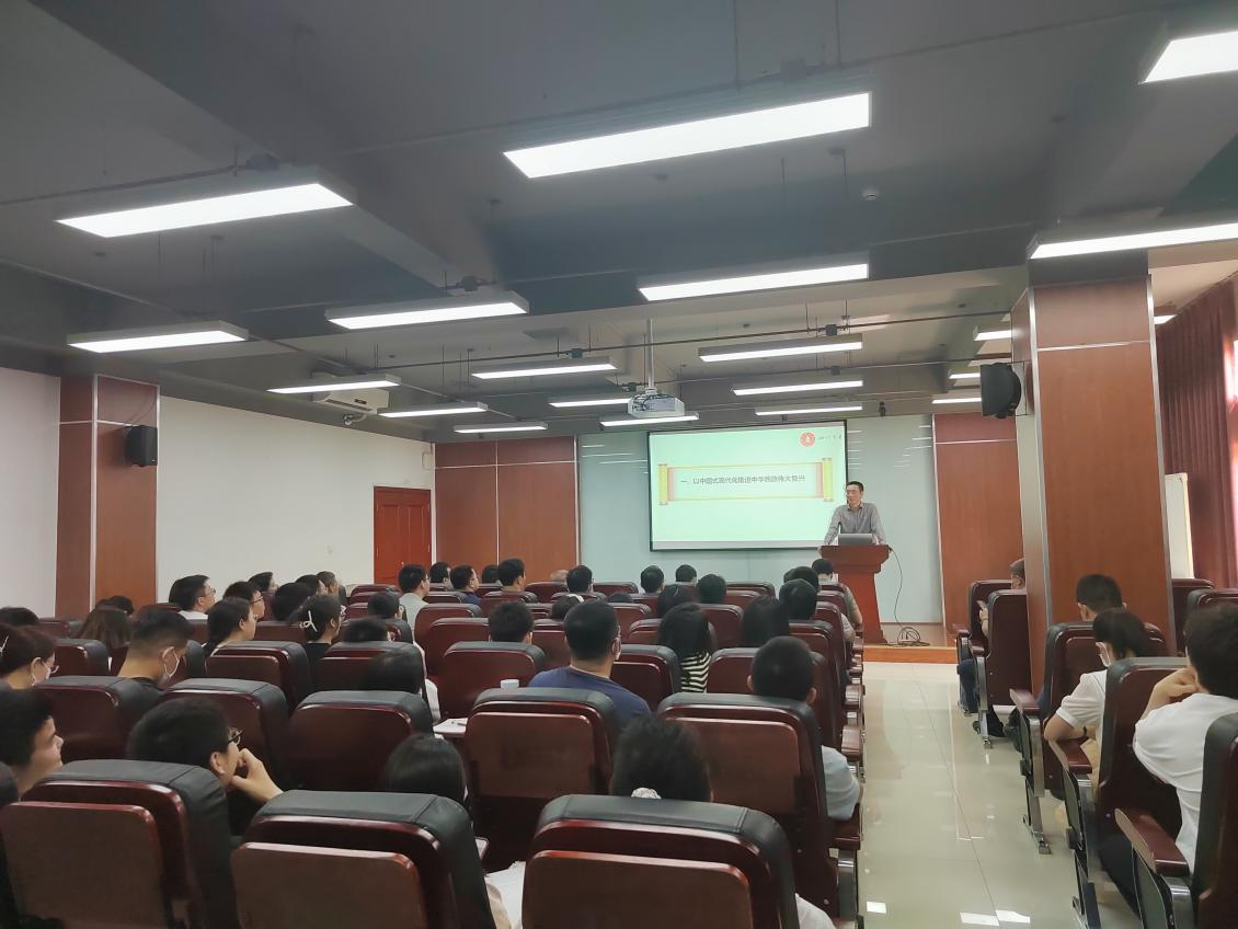 蒋教授以生动事例向与会人员阐释了中国式现代化特色,中国式现代化开创了不同于西方资本主义现代化的全新路径,打破了“现代化等于西方化”的迷思,为人类对更好社会制度的探索提供了中国方案、贡献了中国智慧。