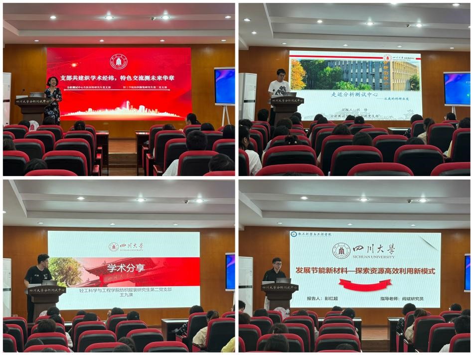 为深入学习党员先锋模范的榜样精神,进一步加强研究生党员的科研水平和实验技术能力,认真组织开展好“三个一流”创建活动,5月15日下午,纺织服装研究生第二党支部联合2023级纺织服装团支部、生物医学工程与材料研究生支部共同开展了联建共建特色党建活动,组织党员及团员们前往四川大学分析测试中心进行参观学习,并开展学术交流。